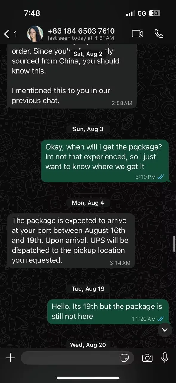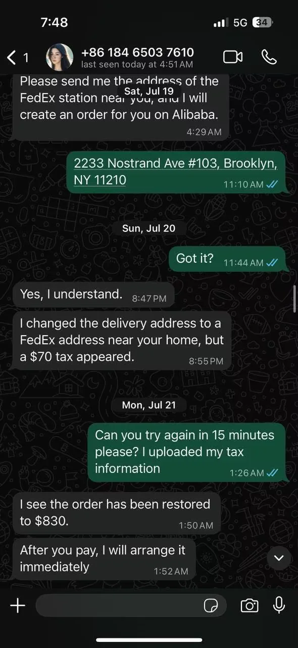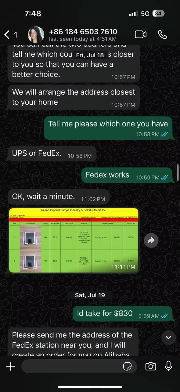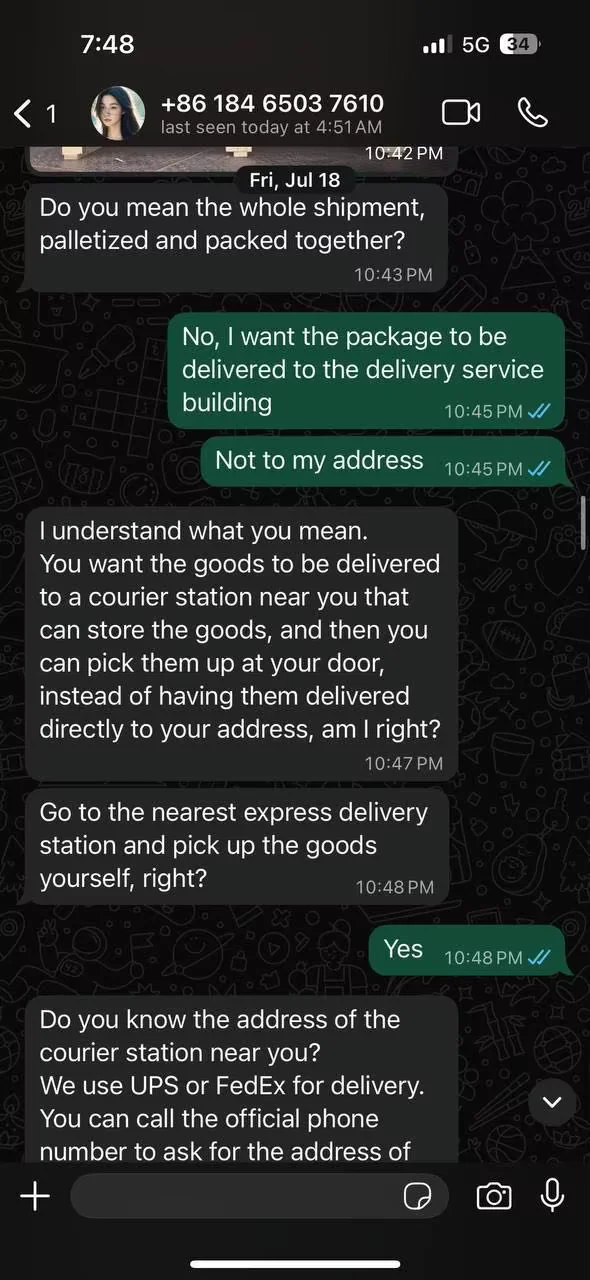 Never buy from this supplier. I lost $974 due to their irresponsibility. I clearly indicated that I wanted to use fedex and I want to have my package delivered to a fedex local office for a pick up. The operator used UPS instead, which caused to fail the delivery. After the operator accused me of providing the address. THIS IS A SCAMMER. THE SCREENSHOTS ARE UNDERNATH. Also never use terrible alibaba service. Their dispute serer has offered me $200 and $300 coupouns to "buy" my $1000. Pure clowns, Mendy is getting dislike to as the worst dispute agent